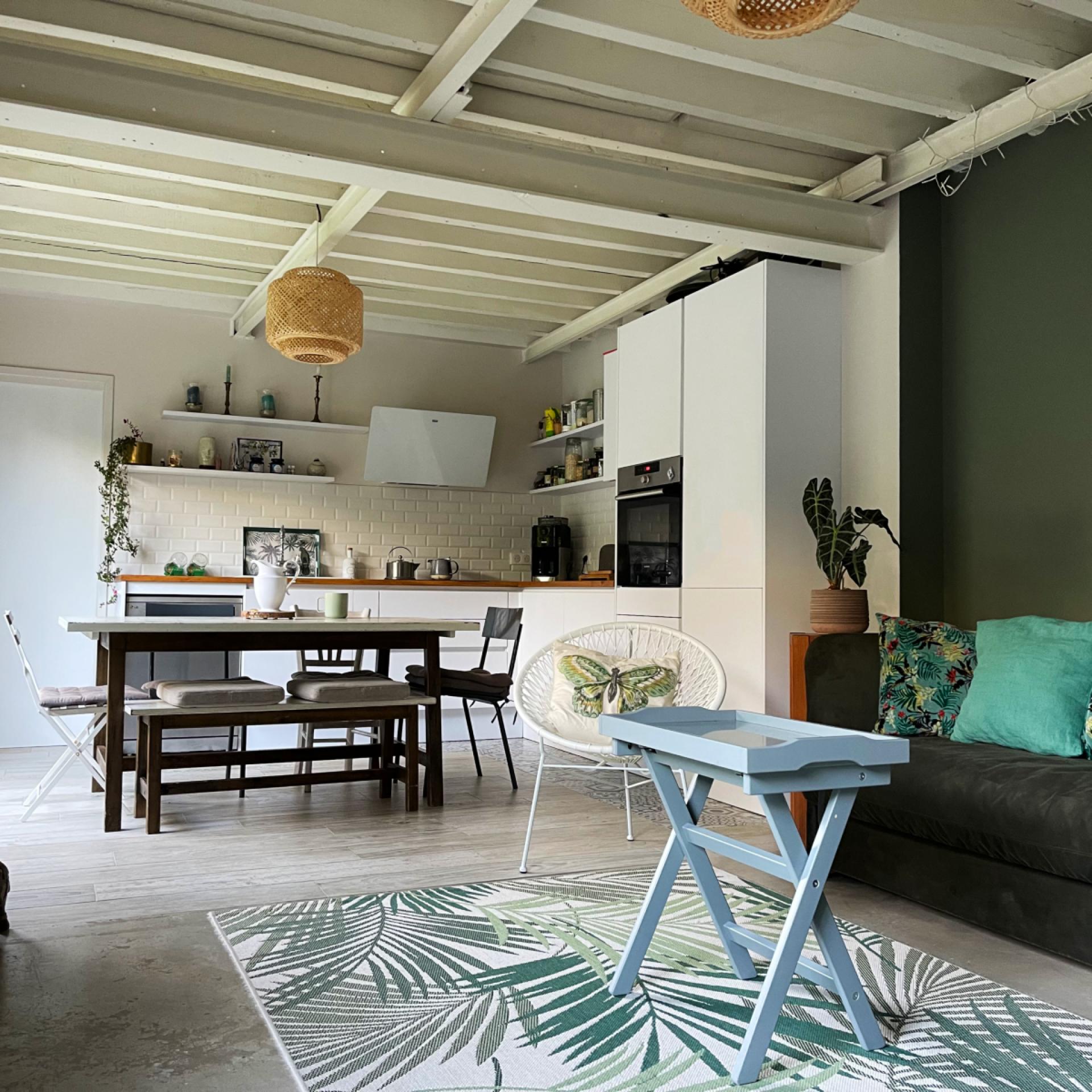 Le projet consistait à optimiser les volumes existants pour concevoir un studio cosy au style campagne chic, destiné à la location. L’ancienne cuisine a été convertie en un espace fonctionnel avec coin eau et kitchenette. La nouvelle cuisine a été intégrée dans la pièce de vie, créant un espace familial fluide et convivial, idéal pour les échanges du quotidien.