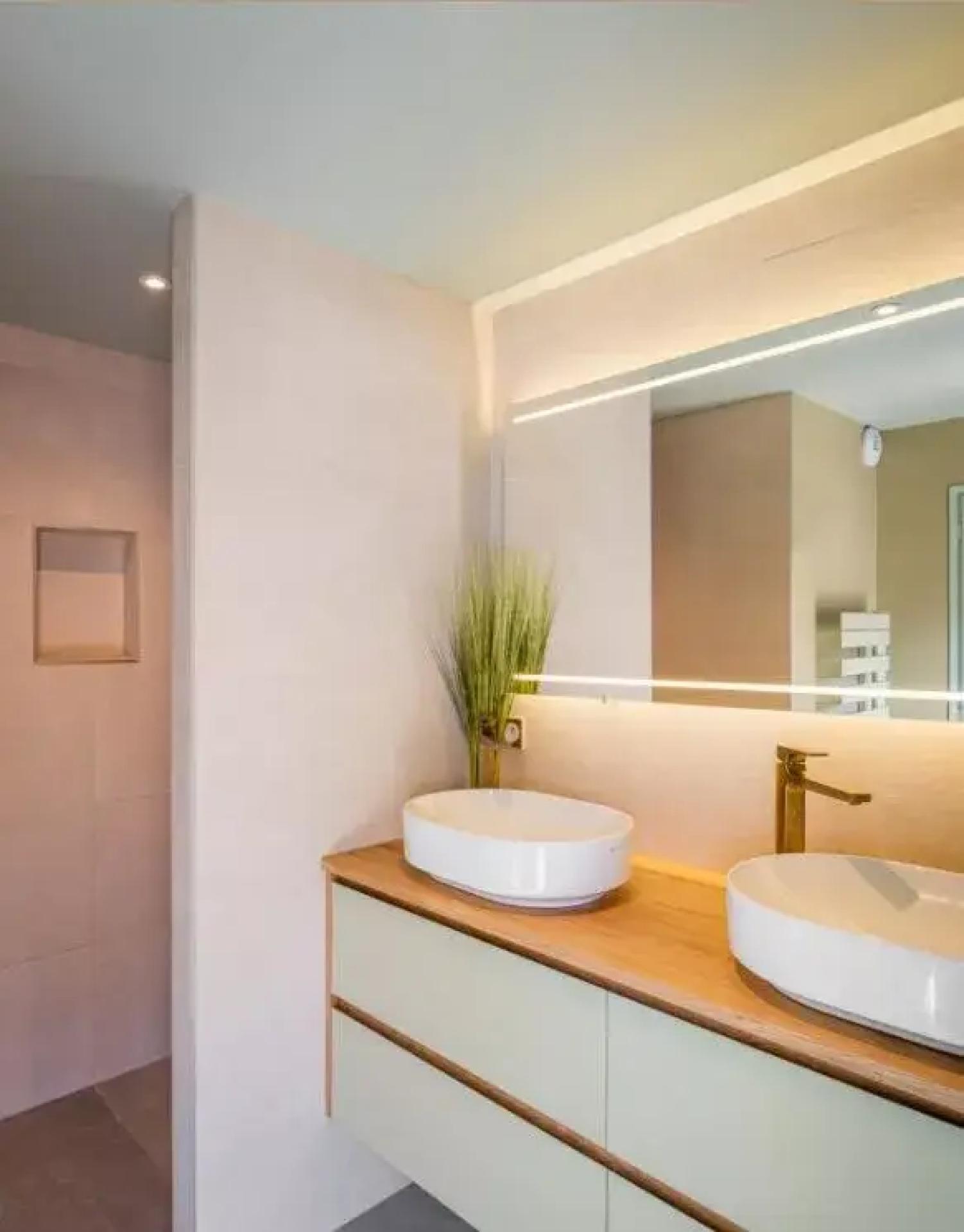 Le mobilier sur-mesure est aussi la solution idéale pour les pièces aux dimensions complexes ou pour répondre à des besoins très précis. Par exemple, dans une salle de bain exiguë, un meuble intégré combiné à des rangements permet d’optimiser chaque centimètre sans surcharger l’espace visuellement, comme l’on peut le voir avec un de nos projet, ou un meuble sur-mesure à été crée afin de s’adapter parfaitement à la largeur entre les 2 murs !